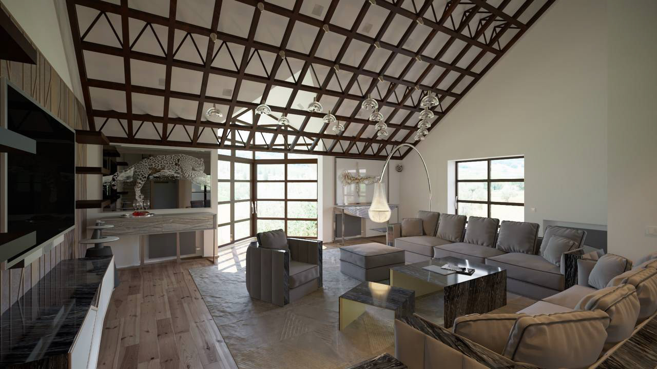Проєкт дизайну інтер'єру приватного будинку в Іванковичах, Київська область. Використовувались меблі італійської фабрики Visionnaire.